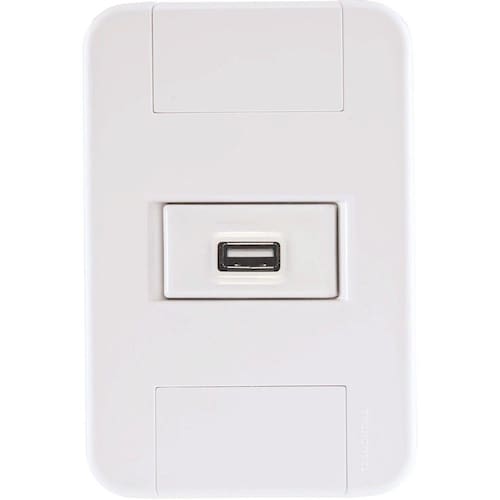 Com o Conjunto 4x2 com 1 Tomada USB 1,5 A Bivolt Tramontina Tablet Branco você vai ter ainda mais praticidade na hora de carregar seu celular ou equipamentos eletrônicos. Produzido em termoplástico com acabamento brilho na cor branca, ele possui sistema modular com o suporte incorporado e furo oblongo que facilita a fixação e a regulagem da placa à parede, deixando-a reta; além disso, sua instalação não fica aparente, o que deixa seu cômodo ainda mais bonito. O conjunto perfeito para sua casa e que acompanha parafusos para a instalação. Orientações . Observações A instalação e segurança: É importante que o produto seja instalado por profissional habilitado. Antes de instalar, desligue a energia elétrica. Características Gerais EAN13 7891435928112 DUN14 17891435928119 NCM 8504.40.10 Peso Líquido 0,0480 kg. Peso Bruto 0,0520 kg. Metragem 0,000300 m³. Dimensões Embalagem (Compr. X Larg. X Alt.) 150x 100x 20 mm. Dimensões Produto (Compr. X Larg. X Alt.) 123x 82x 42 mm. Cor 1 FFFFFF Hexa
