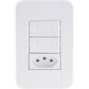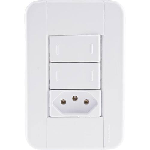 Conjunto 4x2 Com 2 Interruptores Paralelos 10 A 250 V E 1 Tomada 2p+t 10 A 250 V Tramontina Tablet Branco Conjunto 4x2 com 2 Interruptores Paralelos 10 A 250 V e 1 Tomada 2P T 10 A 250 V Tramontina Tablet Branco Utilize o Conjunto 4x2 com 2 Interruptores Paralelos 10 A 250 V e 1 Tomada 2P T 10 A 250 V Tramontina Tablet Branco e tenha um item completo para ligar equipamentos elétricos e eletrônicos e ainda acender as luzes do ambiente. Produzido em termoplástico com acabamento brilho na cor branca, ele possui sistema modular com o suporte incorporado e furo oblongo que facilita a fixação e a regulagem da placa à parede, deixando-a reta; além disso, sua instalação não fica aparente, o que deixa seu cômodo ainda mais bonito. O conjunto perfeito para sua casa e que acompanha parafusos para a instalação.