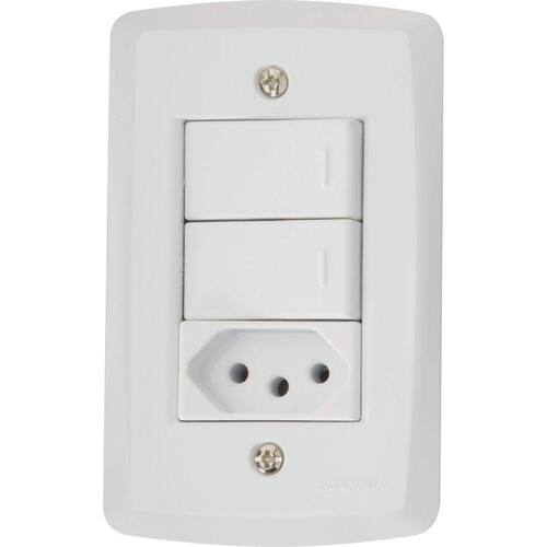 Conjunto 4x2 Com 2 Interruptores Paralelos 10 A 250 V E 1 Tomada 2p+t 20 A 250 V Tramontina Lux2 Bra Tramontina Conjunto 4x2 com 2 Interruptores Paralelos 10 A 250 V e 1 Tomada 2P+T 20 A 250 V Tramontina Lux2 Branco Tramontina - Com o Conjunto 4x2 com 2 Interruptores Paralelos 10 A 250 V e 1 Tomada 2P+T 20 A 250 V Tramontina Lux2 Branco você ilumina seus ambientes e liga equipamentos de maneira funcional e prática. Produzido em termoplástico na cor branca com acabamento em brilho, ele vai agregar funcionalidade nos ambientes onde for inserido. Sua instalação é muito simples, pois tem sistema modular onde a placa possui suporte incorporado, além de acompanhar parafusos adequados para sua fixação. Com a Tramontina, você tem as melhores escolhas para sua casa!Orientações.ObservaçõesA instalação e segurança: É importante que o produto seja instalado por profissional habilitado. Antes de instalar, desligue a energia elétrica.Características GeraisEAN137891435054996DUN1417891435054993NCM8536.69.10Peso Líquido0,0860 kg.Peso Bruto0,0920 kg.Metragem0,000600 m.Dimensões Embalagem (Compr. X Larg. X Alt.)150x 100x 40 mm.Dimensões Produto (Compr. X Larg. X Alt.)122x 79x 42 mm.Cor 1FFFFFF Hexa Características Gerais do Produto: Garantia: - 1 Ano