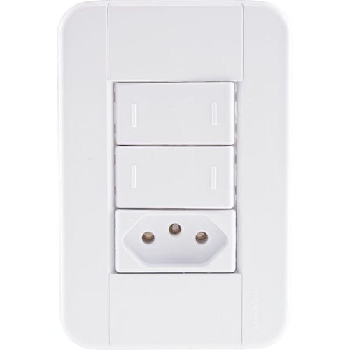 Conjunto 4x2 Com 2 Interruptores Paralelos 10 A 250 V E 1 Tomada 2p+t 20 A 250 V Tramontina Tablet B Tramontina Conjunto 4x2 com 2 Interruptores Paralelos 10 A 250 V e 1 Tomada 2P+T 20 A 250 V Tramontina Tablet Branco Tramontina - Introduza materiais de qualidade em sua rotina para obter maior eficiência e qualidade onde você estiver, o Conjunto 4x2 com 2 Interruptores Paralelos 10 A 250 V e 1 Tomada 2P+T 20 A 250 V Tramontina Tablet Branco é perfeito para sua casa ou ambiente de trabalho. Produzido em termoplástico com acabamento brilho na cor branca, ele possui sistema modular com o suporte incorporado e furo oblongo que facilita a fixação e a regulagem da placa à parede, deixando-a reta; além disso, sua instalação não fica aparente, o que deixa seu cômodo ainda mais bonito. O conjunto perfeito para sua casa e que acompanha parafusos para a instalação.Orientações.ObservaçõesA instalação e segurança: É importante que o produto seja instalado por profissional habilitado. Antes de instalar, desligue a energia elétrica.Características GeraisEAN137891435064940DUN1417891435064947NCM8536.69.10Peso Líquido0,0850 kg.Peso Bruto0,0920 kg.Metragem0,000600 m.Dimensões Embalagem (Compr. X Larg. X Alt.)150x 100x 40 mm.Dimensões Produto (Compr. X Larg. X Alt.)123x 82x 42 mm.Cor 1FFFFFF Hexa Características Gerais do Produto: Garantia: - 1 Ano