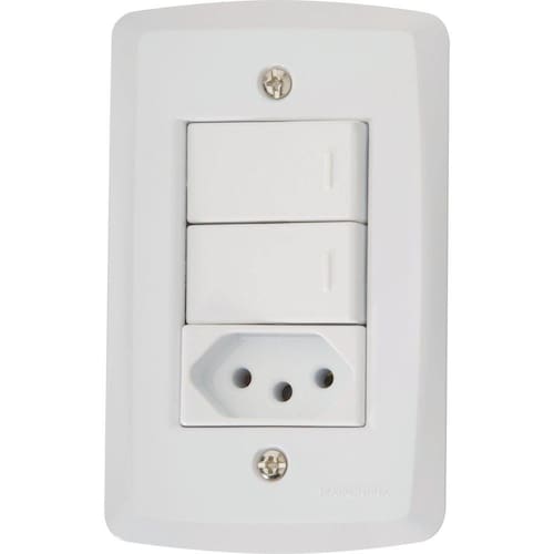 Com o Conjunto 4x2 com 2 Interruptores Paralelos 10 A 250 V e 1 Tomada 2P+T 20 A 250 V Tramontina Lux2 Branco você ilumina seus ambientes e liga equipamentos de maneira funcional e prática. Produzido em termoplástico na cor branca com acabamento em brilho, ele vai agregar funcionalidade nos ambientes onde for inserido. Sua instalação é muito simples, pois tem sistema modular onde a placa possui suporte incorporado, além de acompanhar parafusos adequados para sua fixação. Com a Tramontina, você tem as melhores escolhas para sua casa! Orientações . Observações A instalação e segurança: É importante que o produto seja instalado por profissional habilitado. Antes de instalar, desligue a energia elétrica. Características Gerais EAN13 7891435054996 DUN14 17891435054993 NCM 8536.69.10 Peso Líquido 0,0860 kg. Peso Bruto 0,0920 kg. Metragem 0,000600 m³. Dimensões Embalagem (Compr. X Larg. X Alt.) 150x 100x 40 mm. Dimensões Produto (Compr. X Larg. X Alt.) 122x 79x 42 mm. Cor 1 FFFFFF Hexa