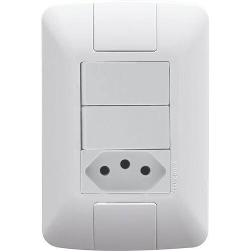 Utilize o Conjunto 4x2 com 2 Interruptores Paralelos 6 A 250 V e 1 Tomada 2P+T 10 A 250 V Tramontina Aria Branco e tenha um item completo para ligar equipamentos elétricos e eletrônicos e ainda acender as luzes do ambiente. Produzido em termoplástico com acabamento brilho na cor branca, ele possui sistema modular com o suporte incorporado e furo oblongo que facilita a fixação e a regulagem da placa à parede, deixando-a reta; além disso, sua instalação não fica aparente, o que deixa seu cômodo ainda mais bonito. Um item ideal para sua casa, que acompanha suporte e parafusos para a instalação! Orientações . Observações A instalação e segurança: É importante que o produto seja instalado por profissional habilitado. Antes de instalar, desligue a energia elétrica. Características Gerais EAN13 7891435938166 DUN14 17891435938163 NCM 8536.69.10 Peso Líquido 0,0700 kg. Peso Bruto 0,0740 kg. Metragem 0,000608 m³. Dimensões Embalagem (Compr. X Larg. X Alt.) 190x 80x 40 mm. Dimensões Produto (Compr. X Larg. X Alt.) 120x 80x 35 mm. Cor 1 FFFFFFF Hexa
