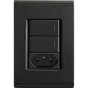 Conjunto 4x2 Com 2 Interruptores Simples 10 A 250 V E 1 Tomada 2p T 10 A 250 V Tramontina Liz Grafite Conjunto 4x2 com 2 Interruptores Simples 10 A 250 V e 1 Tomada 2P T 10 A 250 V Tramontina Liz Grafite A qualidade, versatilidade e a beleza que você busca em seus projetos elétricos está presente em todos os detalhes do conjunto 4x2 com 2 interruptores simples 10 A 250 V e 1 tomada 2P T 10 A 250 V Tramontina Liz grafite. Com sistema modular com gradual ajuste entre a placa e o suporte, ele proporciona um acabamento perfeito da placa com a parede, além de ter fixação que não fica aparente. Sua fabricação é em termoplástico com acabamento brilho, material que não retém poeira e agrega qualidade e praticidade. Além dessas características, o conjunto possui furo oblongo que facilita a fixação e a regulagem da placa à parede e furos específicos para a fixação em paredes de madeira!