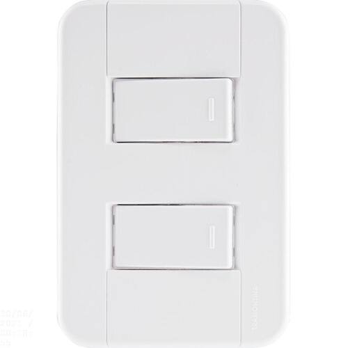 O Conjunto 4x2 com 2 Interruptores Simples 10 A 250 V Tramontina Tablet Branco é a escolha certa para deixar seus ambientes iluminados. Produzido em termoplástico com acabamento brilho na cor branca, ele possui sistema modular com o suporte incorporado e furo oblongo que facilita a fixação e a regulagem da placa à parede, deixando-a reta; além disso, sua instalação não fica aparente, o que deixa seu cômodo ainda mais bonito. O conjunto perfeito para sua casa e que acompanha parafusos para a instalação. Orientações . Características Gerais EAN13 7891435064810 DUN14 17891435064817 NCM 8536.50.90 Peso Líquido 0,0600 kg. Peso Bruto 0,0660 kg. Metragem 0,000600 m³. Dimensões Embalagem (Compr. X Larg. X Alt.) 150x 100x 40 mm. Dimensões Produto (Compr. X Larg. X Alt.) 123x 82x 35 mm. Cor 1 FFFFFF Hexa Observações A instalação e segurança: É importante que o produto seja instalado por profissional habilitado. Antes de instalar, desligue a energia elétrica.