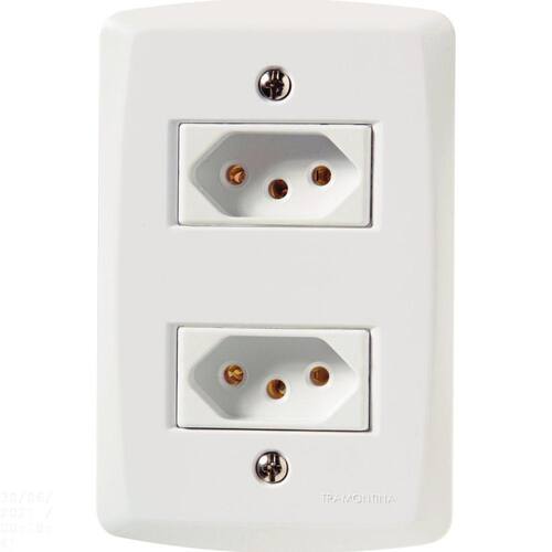 Garanta praticidade e eficiência para sua casa, com o Conjunto 4x2 com 2 Tomadas 2P+T 10 A 250 V Tramontina Lux2 Branco. Produzido em termoplástico na cor branca com acabamento em brilho, ele vai agregar funcionalidade nos ambientes onde for inserido. Sua instalação é muito simples, pois tem sistema modular onde a placa possui suporte incorporado, além de acompanhar parafusos adequados para sua fixação. Com a Tramontina, você tem as melhores escolhas para sua casa! Orientações . Características Gerais EAN13 7891435044096 DUN14 17891435044093 NCM 8536.69.10 Peso Líquido 0,0660 kg. Peso Bruto 0,0720 kg. Metragem 0,000600 m³. Dimensões Embalagem (Compr. X Larg. X Alt.) 150x 100x 40 mm. Dimensões Produto (Compr. X Larg. X Alt.) 122x 79x 35 mm. Cor 1 FFFFFF Hexa Observações A instalação e segurança: É importante que o produto seja instalado por profissional habilitado. Antes de instalar, desligue a energia elétrica.