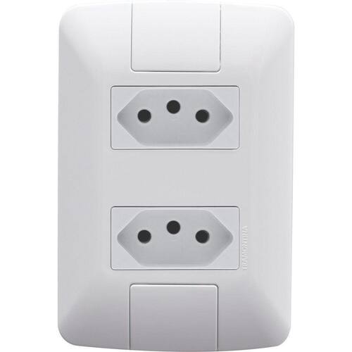 Conjunto 4x2 Com 2 Tomadas 2p+t Tramontina Aria 20 A 250 V Branco Tramontina Conjunto 4x2 com 2 Tomadas 2P+T Tramontina Aria 20 A 250 V Branco Tramontina - Com o Conjunto 4x2 com 2 Tomadas 2P+T Tramontina Aria 20 A 250 V Branco você terá mais praticidade na hora de ligar mais de um equipamento elétrico ou eletrônico ao mesmo tempo. Produzido em termoplástico com acabamento brilho na cor branca, ele possui sistema modular com o suporte incorporado e furo oblongo que facilita a fixação e a regulagem da placa à parede, deixando-a reta; além disso, sua instalação não fica aparente, o que deixa seu cômodo ainda mais bonito. Um item ideal para sua casa, que acompanha suporte e parafusos para a instalação!Orientações.ObservaçõesA instalação e segurança: É importante que o produto seja instalado por profissional habilitado. Antes de instalar, desligue a energia elétrica.Características GeraisEAN137891435938098DUN1417891435938095NCM8536.69.10Peso Líquido0,0600 kg.Peso Bruto0,0630 kg.Metragem0,000608 m.Dimensões Embalagem (Compr. X Larg. X Alt.)190x 80x 40 mm.Dimensões Produto (Compr. X Larg. X Alt.)120x 80x 35 mm.Cor 1FFFFFFF Hexa Características Gerais do Produto: - Cor: Branco Garantia: - 1 Ano