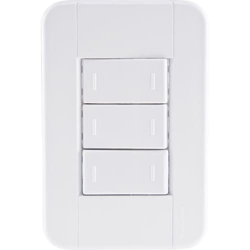 Conjunto 4x2 Com 3 Interruptores Paralelos 10 A 250 V Tramontina Tablet Branco Conjunto 4x2 com 3 Interruptores Paralelos 10 A 250 V Tramontina Tablet Branco Ilumine o seu ambiente com maior beleza e eficiência utilizando o Conjunto 4x2 com 3 Interruptores Paralelos 10 A 250 V Tramontina Tablet Branco. Perfeito para comandar dois equipamentos de locais diferentes, ele é produzido em termoplástico com acabamento brilho na cor branca e possui sistema modular com o suporte incorporado e furo oblongo que facilita a fixação e a regulagem da placa à parede, deixando-a reta; além disso, sua instalação não fica aparente, o que deixa seu cômodo ainda mais bonito. O conjunto perfeito para sua casa e que acompanha parafusos para a instalação.