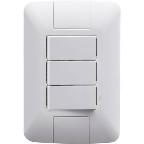 Conjunto 4x2 C/3 Interruptores Aria Paralelos 6 A Tramontina Ilumine o seu ambiente com maior beleza e eficiência utilizando o Conjunto 4x2 com 3 Interruptores Paralelos 6 A 250 V Tramontina Aria Branco. Perfeito para ligar as luzes em dois locais diferentes, ele é produzido em termoplástico com acabamento brilho na cor branca e possui sistema modular com o suporte incorporado e furo oblongo que facilita a fixação e a regulagem da placa à parede, deixando-a reta; além disso, sua instalação não fica aparente, o que deixa seu cômodo ainda mais bonito. Um item ideal para sua casa, que acompanha suporte e parafusos para a instalação