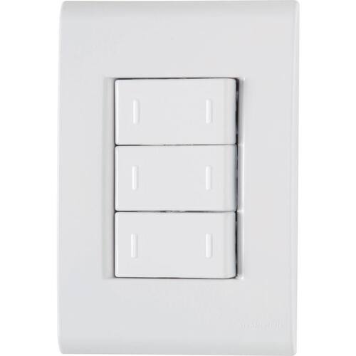 Conjunto 4x2 Com 3 Interruptores Paralelos Tramontina Liz 10 A 250 V Branco Conjunto 4x2 com 3 Interruptores Paralelos Tramontina Liz 10 A 250 V Branco Com o Conjunto 4x2 com 3 Interruptores Paralelos Tramontina Liz 10 A 250 V Branco você vai iluminar seus ambientes com mais praticidade e qualidade. Produzido em termoplástico branco, ele vai garantir maior praticidade e proporcionar um acabamento perfeito entre a placa e a parede, sem deixar frestas e vincos na instalação. Além disso, possui furo oblongo que facilita a fixação e a regulagem da placa à parede e evita que ela fique desalinhada. Sua fixação não é aparente e pode ser utilizada tanto em paredes de alvenaria, quanto em paredes de madeira. A placa ainda pode ser trocada por outras cores da linha, garantindo maior versatilidade. Garanta o melhor para sua casa, com a Tramontina!