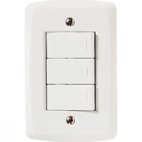 Iluminar os ambientes da sua casa ficou muito mais fácil e prático com o Conjunto 4x2 com 3 Interruptores Simples 10 A 250 V Tramontina Lux2 Branco. Produzido em termoplástico na cor branca com acabamento em brilho, ele vai agregar funcionalidade nos ambientes onde for inserido. Sua instalação é muito simples, pois tem sistema modular onde a placa possui suporte incorporado, além de acompanhar parafusos adequados para sua fixação. Com a Tramontina, você tem as melhores escolhas para sua casa! Orientações . Características Gerais EAN13 7891435043136 DUN14 17891435043133 NCM 8536.50.90 Peso Líquido 0,0710 kg. Peso Bruto 0,0780 kg. Metragem 0,000600 m³. Dimensões Embalagem (Compr. X Larg. X Alt.) 150x 100x 40 mm. Dimensões Produto (Compr. X Larg. X Alt.) 122x 79x 35 mm. Cor 1 FFFFFF Hexa Observações A instalação e segurança: É importante que o produto seja instalado por profissional habilitado. Antes de instalar, desligue a energia elétrica.