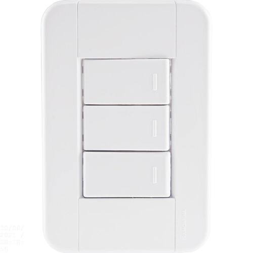 Com o Conjunto 4x2 com 3 Interruptores Simples 10 A 250 V Tramontina Tablet Branco você vai iluminar seus ambientes com mais praticidade e qualidade. Produzido em termoplástico com acabamento brilho na cor branca, ele possui sistema modular com o suporte incorporado e furo oblongo que facilita a fixação e a regulagem da placa à parede, deixando-a reta; além disso, sua instalação não fica aparente, o que deixa seu cômodo ainda mais bonito. O conjunto perfeito para sua casa e que acompanha parafusos para a instalação.