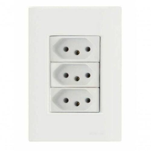 Conjunto 4x2 Com 3 Tomadas 2p+t 10 A 250 V Tramontina Giz Branco As placas e módulo da Linha Giz sãofabricados em termoplástico com acabamento brilho na cor branca , que não retémpoeira, unindo qualidade e praticidade . O sistema é modular, com gradualajuste entre a placa e o suporte , proporcionando perfeito acabamento da placacom a parede . Possuem furo oblongo para facilitar a fixação e a regulagem daplaca á parede. Além disso , possuem furos para a fixação em parede de madeira.A fixação não aparente.Garantia de 4 anos. Recomendações de Uso: A instalação e segurança: É importante que o produto seja instalado por profissional habilitado. Antes de instalar, desligue a energia elétrica.- Foto meramente ilustrativa Informações Adicionais: