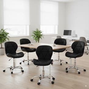 Renove seu ambiente com o Conjunto 5 Cadeiras Office Eiffel Slim Giratórias – perfeitas para quem busca conforto, design moderno e praticidade em escritórios, home office, salas de reunião ou até mesmo no ambiente residencial.