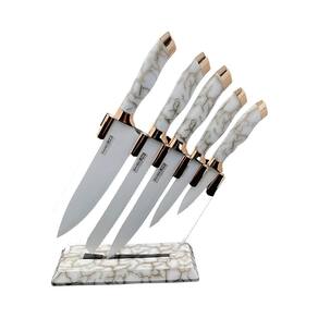 Conjunto 5 Facas Mármore com Suporte Branco Antiaderente Eleve o nível da sua cozinha com o Conjunto 5 Facas Mármore com Suporte Branco Antiaderente. Desenvolvido para quem busca precisão, durabilidade e sofisticação, este conjunto combina design contemporâneo e desempenho , garantindo cortes mais precisos e uma experiência culinária mais prazerosa no dia a dia. Ideal para chefs profissionais e para quem ama cozinhar, ele se adapta a qualquer estilo de cozinha, entregando beleza, praticidade e eficiência em um só produto. Com revestimento antiaderente de alta qualidade, as lâminas evitam que os alimentos grudem, facilitando o corte e tornando a limpeza muito mais simples e rápida. O design exclusivo em estilo mármore confere um toque luxuoso e moderno à bancada, transformando o conjunto não apenas em uma ferramenta essencial, mas também em um elemento de decoração. O suporte branco que acompanha o kit é elegante, funcional e mantém as facas organizadas e sempre ao alcance, otimizando o espaço da cozinha. As lâminas são fabricadas em aço inox resistente, garantindo durabilidade e cortes precisos em diferentes tipos de alimentos. O cabo anatômico proporciona mais conforto e segurança no manuseio, mesmo em uso prolongado. Cada faca foi projetada para uma função específica, atendendo diferentes necessidades na preparação dos pratos, desde cortar pães macios até carnes mais rígidas, legumes e verduras. Especificações Técnicas: - Material: Plástico e Aço Inox - Faca de Chef: 32,5 cm comprimento x 4 cm altura - Faca de Desossar: 32,3 cm comprimento x 3 cm altura - Faca de Pão: 33 cm comprimento x 3 cm altura - Faca de Utilidades: 20 cm comprimento x 2,5 cm altura - Faca para Corte: 24 cm comprimento x 2,5 cm altura - Acompanha suporte branco Itens Inclusos: - 01 Faca de Chef - 01 Faca de Desossar - 01 Faca de Pão - 01 Faca de Utilidades - 01 Faca para Corte - 01 Suporte Diferenciais do Produto: - Revestimento antiaderente que evita acúmulo de resíduos e facilita a limpeza - Design mármore moderno e sofisticado - Suporte elegante para melhor organização e praticidade - Lâminas afiadas e resistentes para cortes precisos - Ideal tanto para uso doméstico quanto : Este conjunto possui de 3 meses contra defeitos de fabricação, assegurando a qualidade e a confiabilidade do produto. Caso seja identificado algum problema dentro deste prazo, a ou reparo será realizado conforme as condições estabelecidas pelo fabricante, garantindo mais tranquilidade na sua compra. O Conjunto 5 Facas Mármore com Suporte Branco Antiaderente é a escolha perfeita para quem valoriza eficiência, beleza e funcionalidade na cozinha. Além de facilitar o preparo das receitas, ele traz um toque de elegância ao ambiente e se destaca como um investimento inteligente para quem busca qualidade e durabilidade em utensílios culinários.
