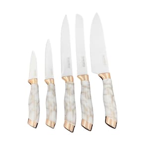 Conjunto 5 Facas Mármore Com Suporte Branco Antiaderente
