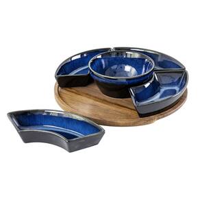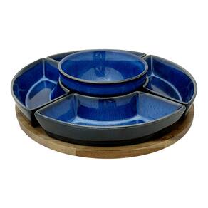 O Conjunto de Petisqueira em Cerâmica Azul com Tábua de Madeira de 6 Peças une modernidade e sofisticação para transformar seus momentos de recepção. Composto por cinco bowls modulares e uma tigela central em cerâmica com acabamento esmaltado em um profundo azul-cobalto, o conjunto destaca-se pelo brilho intenso e pelas bordas com toques rústicos. A base circular em madeira de alta qualidade organiza perfeitamente as peças, permitindo servir uma variedade de antepastos, molhos e petiscos com praticidade e um design contemporâneo que valoriza qualquer mesa posta ou happy hour. Informações básicas: Marca: BTC Home Decor Referencia: UN0011 Cor: azul e madeira natural Contem: 5 petisqueiras e uma base Características: Material: cerâmica e madeira Diâmetro total: 30 cm Especificações técnicas: Permitido uso no micro-ondas: sim Permitido uso no lava-louças: sim Garantia: contra defeitos de fabricação