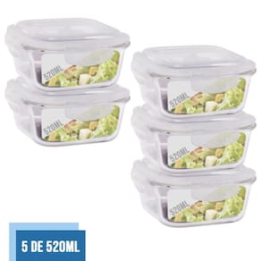 Conjunto 5 Pote Vidro Hermético Marmita Tampa 4 travas 520ml Conjunto com 5 Potes de Vidro com Tampa Hermética 520ml