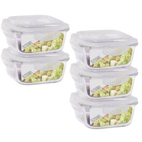Conjunto 5 Pote Vidro Hermético Marmita Tampa 4 travas 520ml Conjunto com 5 Potes de Vidro com Tampa Hermética 520ml