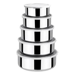 Transforme sua rotina na cozinha com este sofisticado conjunto de tigelas em aço inoxidável, composto por 5 peças de diferentes tamanhos e 5 tampas de plástico resistente, que combinam funcionalidade, durabilidade e elegância em um único produto.