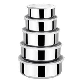 Conjunto 5 potes herméticos bavaria com tampa - inox Você já se sentiu frustrado ao tentar organizar sua cozinha e perceber que não tem os recipientes adequados Sem as tigelas certas, preparar e armazenar alimentos pode se tornar uma verdadeira dor de cabeça, fazendo com que você perca tempo e espaço. O conjunto de tigelas em aço inoxidável é a solução perfeita para transformar sua rotina na cozinha com 5 peças de diferentes tamanhos e tampas plásticas resistentes, ele traz praticidade e elegância para o seu dia a dia. Imagine preparar, misturar e servir seus pratos favoritos com estilo, enquanto mantém tudo organizado e conservado. Além disso, o design moderno e o acabamento brilhante vão deixar sua mesa ainda mais charmosa, seja em um jantar casual ou em uma ocasião especial. Benefícios - versatilidade para diversas receitas e necessidades - conservação ideal dos alimentos com tampas que se ajustam perfeitamente - estilo e sofisticação que embelezam sua mesa - economia de espaço com empilhamento fácil Especificações técnicas - pote 18cm: diâmetro: 18cm x alt.: 6cm capacidade: 1,5 l - pote 16cm: diâmetro: 16cm x alt.: 5,5cm capacidade: 1,1 l - pote 14cm: diâmetro: 14cm x alt.: 5cm capacidade: 770 ml - pote 12cm: diâmetro: 12cm x alt.: 4cm capacidade: 450 ml - pote 10cm: diâmetro: 10cm x alt.: 4cm capacidade: 310 ml - material: aço inox e plástico - contém: 01 conjunto 5 potes herméticos bavaria com tampa - inox Não deixe a desorganização atrapalhar sua experiência na cozinha adquira já o conjunto de tigelas em aço inox e leve praticidade e elegância para suas refeições Informações importantes sobre a compra - com de fábrica Dúvidas frequentes: 2 - em quanto tempo meu pedido será enviado 3 - é confiável fazer esta compra Resposta: desde a criação da nossa empresa já temos milhares de clientes satisfeitos em outras lojas online. Somos uma loja oficial neste marketplace. Além de você ter todas as garantias desta plataforma, ainda lhe oferecemos de fábrica. 4 - os produtos possuem Resposta: sim, oferecemos de 30 dias em todos nossos produtos. Caso ocorra qualquer problema iremos tratar da melhor forma para resolver o ocorrido. 5 - essa compra é segura Resposta: sim, oferecemos total segurança na sua compra bem como sigilo dos seus dados. 6 - e se eu não gostar do produto, terei meu dinheiro de volta Resposta: de acordo com o cdc código de defesa do consumidor todo cliente de compras online tem até 7 dias para devolver o produto em caso de arrependimento. E você não terá custo na devolução. Lembrando que você será reembolsado em 100% do valor da compra. Caso você tenha alguma dúvida, nos envie uma mensagem e responderemos o mais rápido possível. Marca: Não Informado