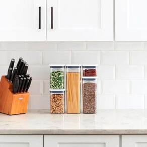 Conjunto 5 Potes Herméticos Oxo POP 2.0 Eleve a organização para o próximo nível com o conjunto de potes POP de 5 peças da OXO Good Grips Herméticos, empilháveis, eficientes em termos de espaço e agora totalmente laváveis na máquina de lavar louças, estes potes de armazenamento de alimentos são livres de BPA e cabem em qualquer espaço. Novas formas e tamanhos oferecem novas possibilidades para armazenar itens essenciais do dia a dia, como farinha, açúcar, café, cereais, aveia, grãos, massas e especiarias. Atualizamos o POP com encaixes práticos e mantivemos os cantos curvos para uma organização suave. Os POP Potes não são apenas para serem na cozinha, use-os onde quiser mais organização. Características Gerais: - 1x Pote 2,1 litros - 1x Pote 1,6 litros - 2x Potes de 1 litro - 1x Pote 0,4 litros - Livres de BPA - Ótima vedação - Botão na tampa para abrir e fechar - Vai ao lava-louças Especificações técnicas: - Marca: Oxo - Modelo: POP 2.0 - Cor: transparente e branca - Dimensões AxLxP : 36,58cm x 33,53cm x 12,19cm