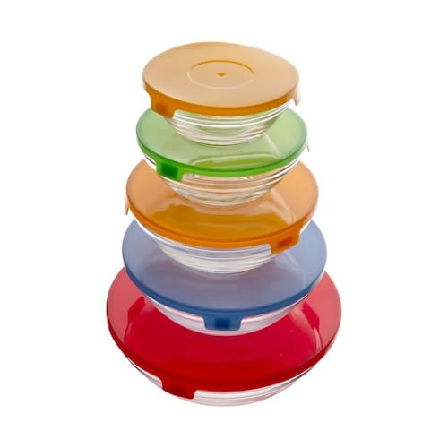 Conjunto 5 Tigelas de Vidro com Tampa de Plástico - Lyor
