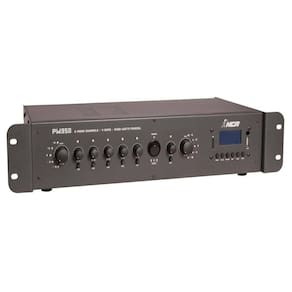 Conjunto 6 amplificadores nca - pw 350conjunto de 06 amplificadores mono de 30w rms cada. dual zone com volume master independente (in a e in b), vu ou até 06 entradas mono com volumes individuais. chaves de seleção individuais com indicação luminosa e saídas independentes. permite a utilização com o setorizador de canais st100.especificações técnicasmódulo média player: tela lcd de 2 polegadas, rádio fm com 18 posições . entrada usb (pendrive) e micro sd card, change folder e controle remoto. potência total:180wrms 4 ohms potência por canal:30wrms 4 ohms entradas: 02 auxiliares rca (l e r) master 06 auxiliares rca mono (01 por canal) 01 usb 01 sd card saídas: 1 parallel output l e r por canal volumes: cha e chb com volumes independentes ch1 a ch6 com volumes independentes alimentação:127/220v dimensões (mm): (l) 485 x (h) 90 x (p) 350 peso (kg): 4,72