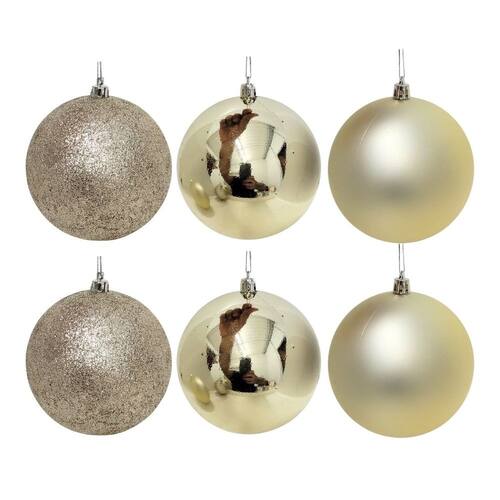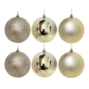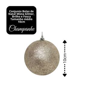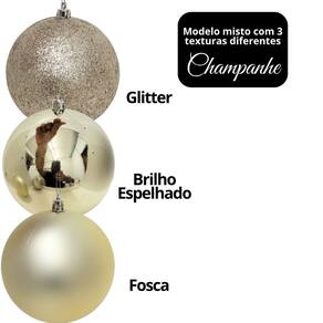 Deixe sua árvore ainda mais elegante com o Conjunto de Bolas de Natal Champanhe Prime Texturas Mistas. Cada bola possui acabamento diferenciado — glitter, brilho espelhado tradicional e fosco, garantindo um efeito visual sofisticado e harmonioso na decoração.