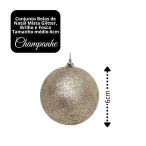 Deixe sua árvore ainda mais elegante com o Conjunto de Bolas de Natal Champanhe Prime Texturas Mistas. Cada bola possui acabamento diferenciado — glitter, brilho espelhado tradicional e fosco, garantindo um efeito visual sofisticado e harmonioso na decoração.