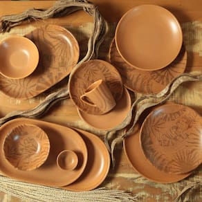 Podem ocorrer pequenas variações de tonalidades de cor, brilho, textura e tamanho das peças, em função de fatores relacionados ao processo de transformação de matérias primas naturais e variações existentes nas etapas de conformação, decoração e queima.