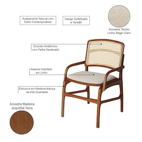 AS IMAGENS SÃO MERAMENTE ILUSTRATIVAS E PODEM SOFRER VARIAÇÕES DE COR E PEQUENOS DETALHES DE ACORDO COM O SEU MONITOR, ILUMINAÇÃO DO AMBIENTE E ATÉ MESMO A SUA PERCEPÇÃO VISUAL.Conjunto 6 Cadeiras de Jantar FlorenÃa em Madeira Jequitibà Terra BraÃo Encosto Palha Linho Bege