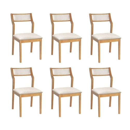 AS IMAGENS SÃO MERAMENTE ILUSTRATIVAS E PODEM SOFRER VARIAÇÕES DE COR E PEQUENOS DETALHES DE ACORDO COM O SEU MONITOR, ILUMINAÇÃO DO AMBIENTE E ATÉ MESMO A SUA PERCEPÇÃO VISUAL.Conjunto 6 Cadeiras de Jantar Lagum Conforto Estofada Jequitibà Natural Linho Bege
