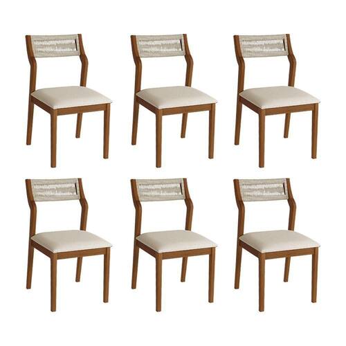 AS IMAGENS SÃO MERAMENTE ILUSTRATIVAS E PODEM SOFRER VARIAÇÕES DE COR E PEQUENOS DETALHES DE ACORDO COM O SEU MONITOR, ILUMINAÇÃO DO AMBIENTE E ATÉ MESMO A SUA PERCEPÇÃO VISUAL.Conjunto 6 Cadeiras de Jantar Lagum Jequitibà Terra Encosto Linho Bege e Corda NÃutica