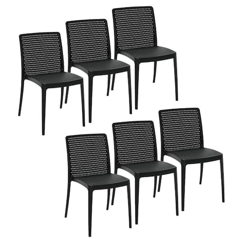 Conjunto 6 Cadeiras Isabelle em Polipropileno e Fibra de Vidro Preto Tramontina