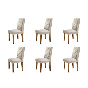 Informações Complementares: Cadeiras produzidas em madeira, estofadas com espumas e tecidos de qualidade, e acabamento em pintura PU, que garante maior durabilidade da cor.