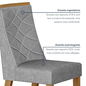 Funcionais e perfeitas para compor os ambientes gourmet da casa, cadeiras são móveis que pedem uma estrutura aconchegante e design lindo, tudo o que você encontra no Conjunto Aurora. Além do assento com enchimento em espuma que proporciona mais comodidade durante as atividades, as 6 peças também têm revestimento em tecido macio ao toque e cor fácil de harmonizar com o restante do mobiliário. Tudo isso contribui para que você possa curtir muito mais com seus convidados ou familiares e desfrutar de um lar-style cativante, sobrando apenas a tarefa de escolher a mesa certa para acompanhar o kit.