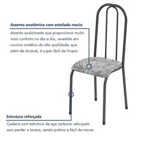 Sim, a estrutura em aço oferece resistência e longa durabilidade. Ambiente Principal: Sala de Jantar codigo_ean: 7900288270795 Complexidade da Montagem: Baixa: pode ser montado por uma pessoa sozinha Cor: Prata/Preto Cor do Produto: Prata/Preto Escala de Brilho: Semi-Fosco Itens Inclusos: 6 Cadeiras e Kit Ferragens Linha ou Coleção: Leticia Manual de Montagem e Instalação: https://product-hub-prd.madeiramadeira.com.br/654129570/documents/18f95927-d2ba-4b39-90a1-7db80b58f4dd328572073217610772824044.pdf Marca: PAONANDA DECOR Material Principal: Aço Necessita Montagem: Sim Origem do Produto: Nacional Peso: 2,8 kg Quantidade de Itens: 6 Sistema de Montagem: Parafusos Tipo de Encosto: Fixo Marca: Não Informado
