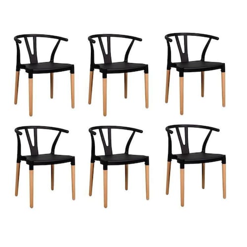 Conjunto com 6 Cadeiras com assento em polipropileno e pernas em madeira. Altura do Conjunto: 74 cm Ambiente: null Ambiente Principal: Sala de Jantar Cor: Preto Informação Complementar: 1x Conjunto 2 Cadeiras Polipropileno Wishbone Preto Largura: 52 Altura: 74 Peso: 4 Profundidade: 52 Necessita Montagem: Sim