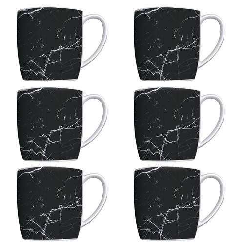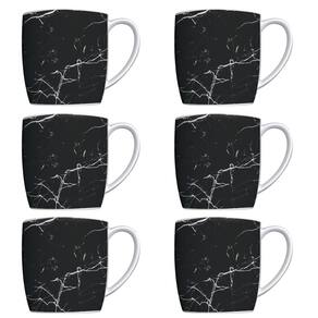 Conjunto 6 Canecas Para Café Jogo Xícaras de Porcelana Preto Nero Marmorizado.