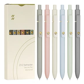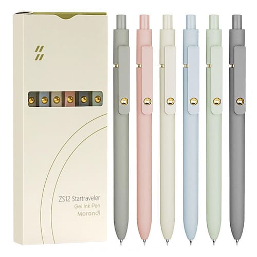 O conjunto de canetas em gel UIXJODO Morandi dourado reúne 6 canetas com tinta preta de secagem rápida e ponta fina de 0,5 mm, indicadas para uso diário em cadernos, agendas, planners e documentos. O corpo das canetas tem acabamento em tons Morandi com detalhe esférico dourado na extremidade superior, conferindo aspecto moderno para uso em escritório, estudo e home office. A tinta foi formulada para proporcionar traço uniforme e nítido, com baixa tendência a borrões, falhas ou sangramento para o verso da folha, o que favorece anotações detalhadas e journaling.