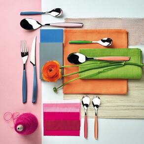 São fabricados em aço inoxidável 18/10 com cabo SAN produzido com a tecnologia de dupla estampagem Bugatti Pro-Tech System, que confere à cor um efeito transparente e sempre vívido.