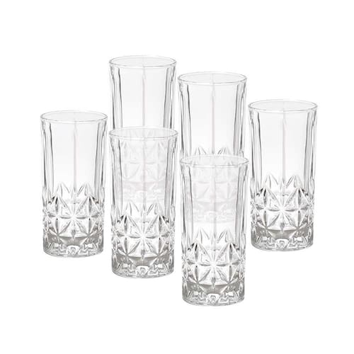 Conjunto de 6 copos altos de vidro Galway, com capacidade de 350ml cada. Perfeitos para servir suas bebidas favoritas com elegância e sofisticação.