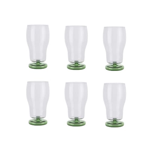 Conteúdo da embalagem: 6 copos de vidro Fluire com base verde.