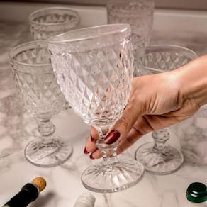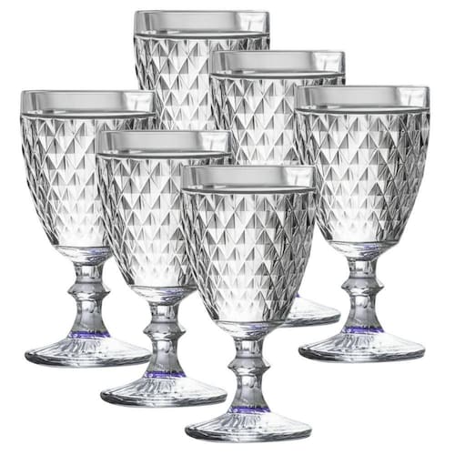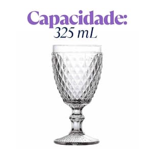 Este conjunto elegante é composto por 6 taças produzidas em vidro de alta qualidade, com acabamento em relevo no clássico estilo bico de abacaxi. Cada taça possui capacidade de 325ml, ideal para servir água, sucos, drinks ou vinhos com sofisticação e charme. O design retrô com detalhes em alto-relevo oferece um toque decorativo refinado à mesa, combinando com diferentes estilos de decoração e ocasiões, desde o uso diário até jantares especiais. A transparência do vidro valoriza a apresentação das bebidas, enquanto a espessura reforçada garante maior resistência e durabilidade ao produto. A base é firme e estável, proporcionando durante o uso. Fácil de limpar, o conjunto também pode ser utilizado em lava-louças, oferecendo mais praticidade no dia a dia. Ideal para quem aprecia itens funcionais e ao mesmo tempo sofisticados, este conjunto de taças é uma excelente escolha para compor a mesa com bom gosto e elegância. Especificações; Composição: Vidro Dimensões aprox: Alt:16,5cm x larg base: 7cm x larg boca: 8,5cm Peso aprox: 337gr Contém; 01 Conjunto de 06 Copos de Vidro Bico de Abacaxi