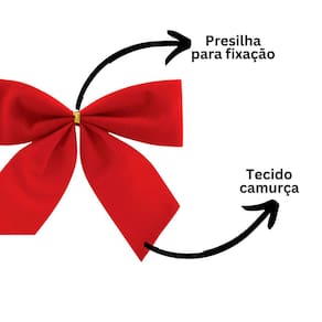 Deixe sua árvore de Natal ainda mais encantadora com este conjunto de laços decorativos vermelhos tradicionais, perfeitos para enfeitar pinheiros, guirlandas, arranjos e embalagens de presentes. Produzidos em tecido camurça suave, possuem acabamento clássico e elegante, ideal para composições natalinas sofisticadas e cheias de vida.