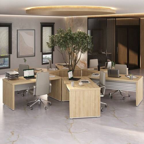 O Conjunto de 6 Mesas Escritório Tamburato oferece durabilidade e design moderno, com tampo e pés em Tamburato de 50 mm de espessura. As elegantes longarinas proporcionam um acabamento sofisticado, unindo estilo e funcionalidade para otimizar seu espaço de trabalho.