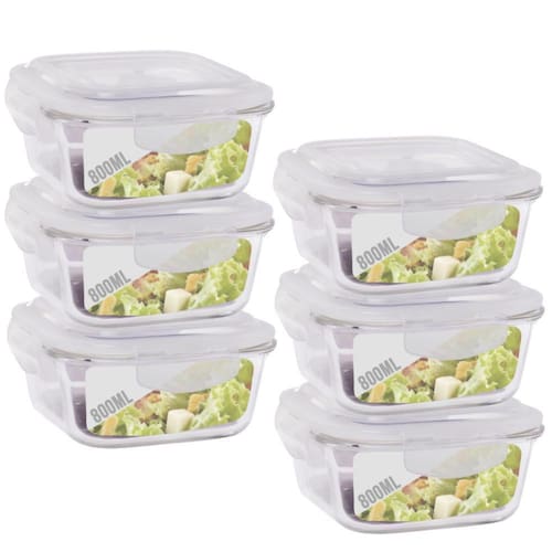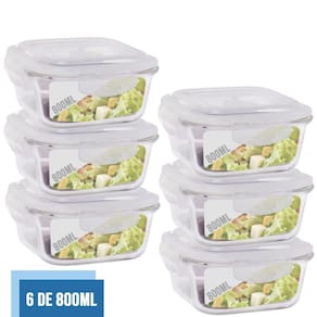 Conjunto 6 Pote Vidro 800ml Hermético Marmita Tampa 4 Travas Conjunto com 6 Potes de Vidro com Tampa Hermética 800ml Os potes com tampas herméticas Click Glass são perfeitos para o dia a dia, garantem o melhor sabor, não fica com cheiro indesejado e você pode esquentar no Microondas ou Forno Tire a tampa nesses casos , ideal para quem trabalha e leva o alimento de casa, ou para guardar diversos alimentos na geladeira/freezer. Além do mais, é fácil de lavar e super resistente. Praticidade com qualidade, veja os diferenciais: · Vidro Borosilicato; · Vai ao forno sem tampa , micro-ondas sem tampa e freezer; · Anel de silicone removível; · Mantém os alimentos frescos por mais tempo; · Evita que o cheiro se espalhe; · Sem risco de vazamento; · Possui 4 travas; · Fácil de limpar e higienizar; · Super Resistente. Postamos com agilidade Informações complementares: Modelo: Pote de Vidro com Tampa Hermética Quadrado Cor: Vidro Translucido Marca: Quality House / Univendas Material: Vidro Capacidade: 800 ml Altura: 7,8 cm Largura: 15,0 cm Peso: 575g Itens inclusos: 6 Unidades do Item descrito acima