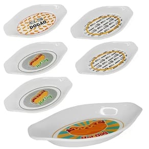 Pratinho para Hot Dog – Diversão e Praticidade à MesaO Pratinho para Hot Dog é perfeito para quem adora dar um toque divertido e prático às refeições. Produzido em melamina, um material plástico resistente a impactos e riscos, ele oferece durabilidade e facilidade na limpeza, ideal tanto para o dia a dia quanto para ocasiões especiais.Seu formato foi pensado especialmente para acomodar pães alongados e os recheios mais variados, facilitando a montagem e tornando a experiência de saborear seu cachorro-quente ainda melhor. A estampa temática traz um charme extra à mesa, deixando os momentos à mesa mais descontraídos e memoráveis.Versátil, o pratinho também pode ser utilizado para servir petiscos, lanches ou outras comidinhas com muito estilo!Características:- Altura: 3 cm- Largura: 11,8 cm- Comprimento: 21 cm- Material: Melamina (plástico resistente)* O ENVIO DAS ESTAMPAS SERÁ ALEATÓRIO (diversos)!Itens inclusos:6 Pratos de Melamina para hot dog Marca: Não Informado