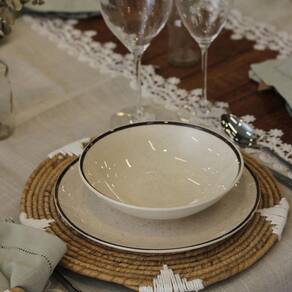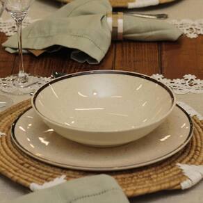 Vento no rosto, o som do mar e a areia aos pés, assim é a brisa perfeita de verão. Pensando em trazer essa sensação para dentro de casa, a coleção Brisa recebe a decoração de pequenos detalhes em preto em todo a peça, representando os grãos de areia. As bordas de cada item da coleção recebem a aplicação de um fino filete na cor marrom, remetendo aos materiais naturais como o bambu e a corda. Inspirados na vertente do design biofílico que busca conectar as pessoas com os benefícios trazidos pela presença da natureza em ambientes e na criação de produtos, apresentamos uma coleção com inspiração natural, trazendo seus elementos mais representativos para um dia a dia mais tranquilo.