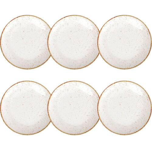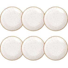 Conjunto 6 Pratos Rústicos Tramontina 25cm Rasos Porcelana Decorado Marrom.